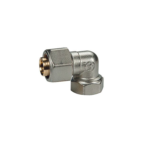 Γωνία θηλυκή για Pex/AL/Pex πολυστρωματικές σωλήνες. Επιχρωμιωμένο ορείχαλκο.