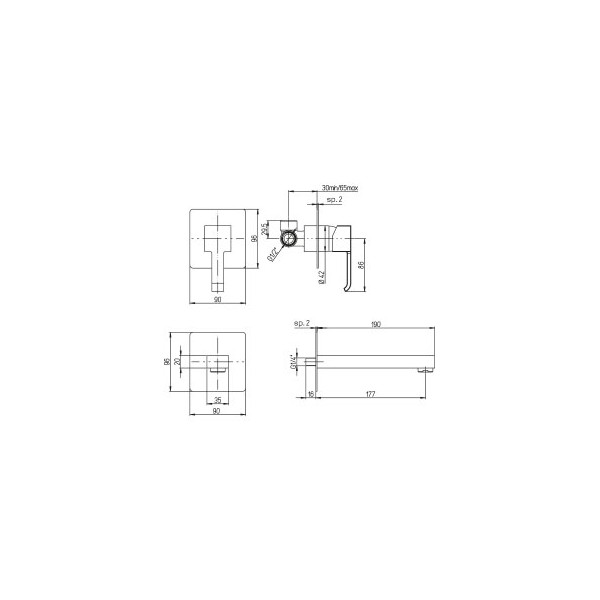 Paini Q μπαταρία νιπτήρος εντοιχισμού αναμεικτική PN19CR208