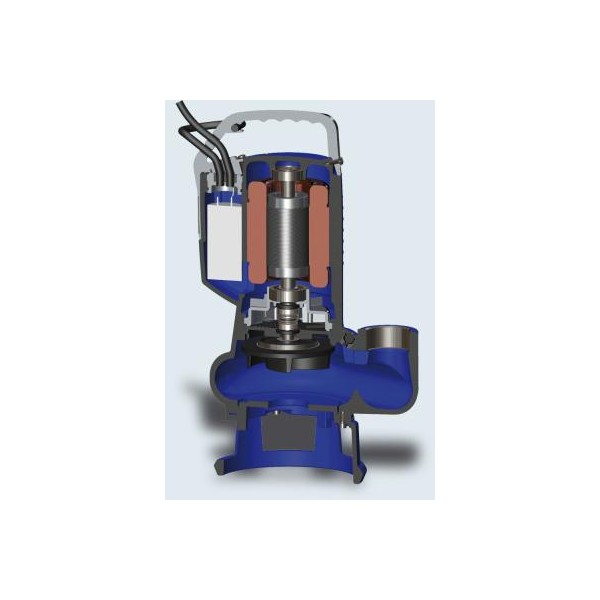 Υποβρύχια αντλία λυμάτων με πτερωτή τύπου VORTEX, κατάλληλη για άντλιση οικιακών αποβλήτων.