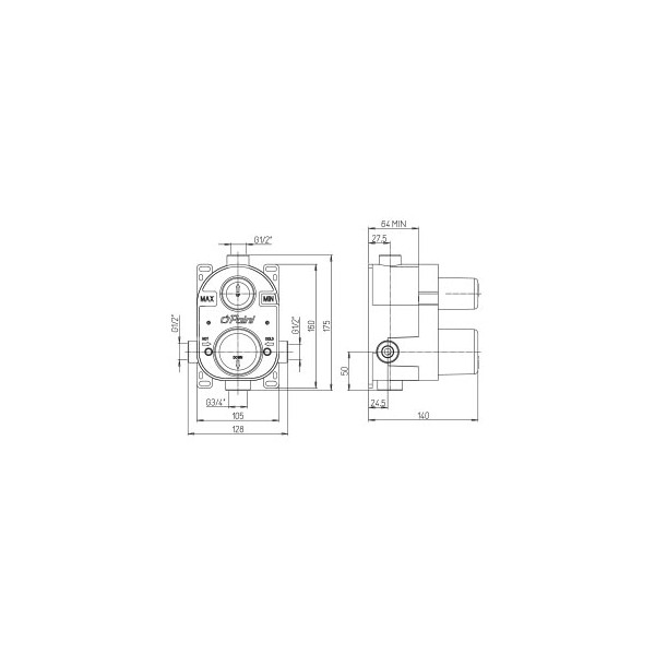 Μηχανισμός αναμείκτης για μπαταρία ντουζιέρας ή μπανιέρας εντοιχισμού, 2 εξόδων Ιταλικής εταιρίας Paini.