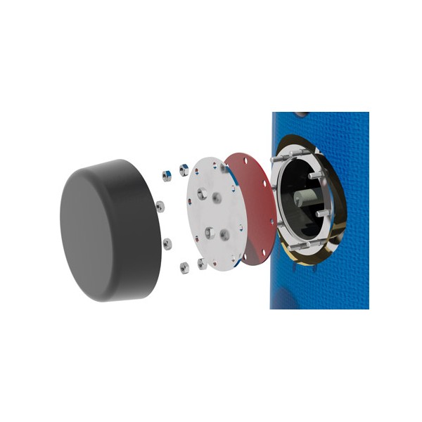 Μεγάλη στρογγυλή φλάντζα έξυπνης και πρωτοποριακής σχεδίασης για εύκολο καθαρισμό από τα άλατα και ταχεία αντικατάσταση του ανοδίου.
