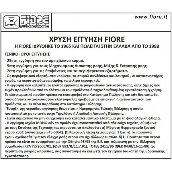 -5 χρόνια εγγύηση για τους μηχανισμούς διακοπής ροής, μίξης και εκτροπής ροής