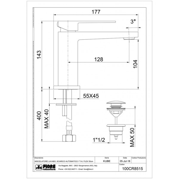 Fiore Kube Νιπτήρος Click-Clack 100CR8515