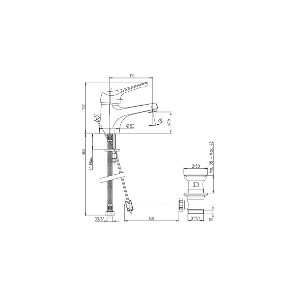 Μπαταρία νιπτήρος αναμεικτική Paini Dilos με αυτόματη βαλβίδα 1.1/4