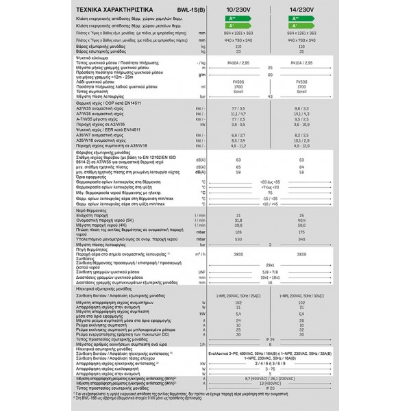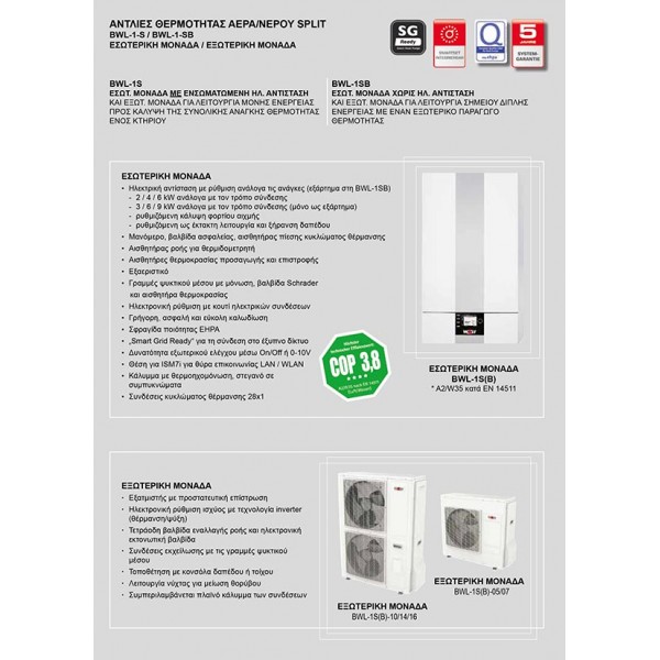 • Αποδοτικές και φιλικές προς το περιβάλλον COP έως 3,8 σε A2/W35 (EN14511)